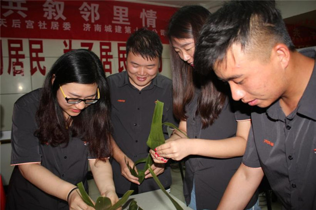 粽香鄰里。社區工作人員及居民代表,與公司團員青年和志愿者開展活動,一起動手包起了粽子?!棒障阍挾宋?,共述鄰里情”的紅色條幅格外溫馨,社區活動室中央,糯米、紅棗、粽葉、棉繩整齊擺放在一起。大家紛紛動手,學著阿姨和老奶奶的動作,包起了粽子。社區汪大媽笑著說:“包粽子,更多的是傳承著我們民俗文化精神,我們包的不是粽子,是快樂、是祥和,是黨領導我們走向美好生活的幸福!”